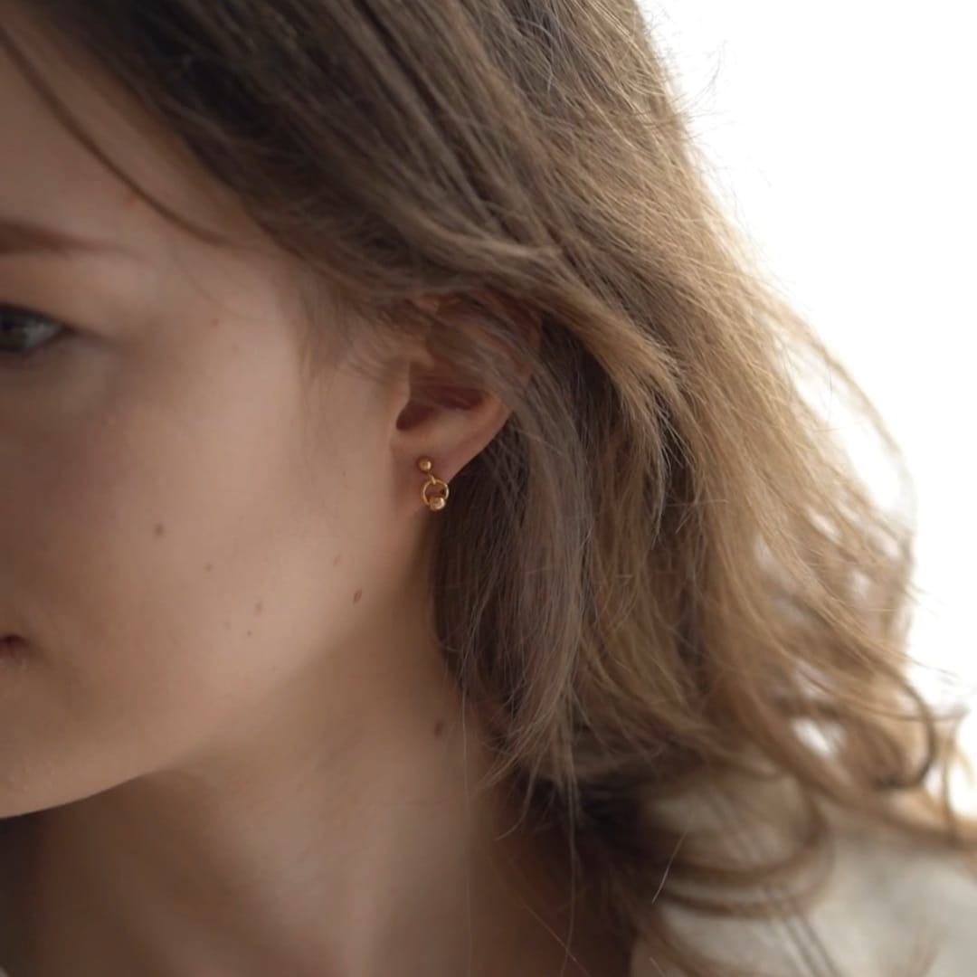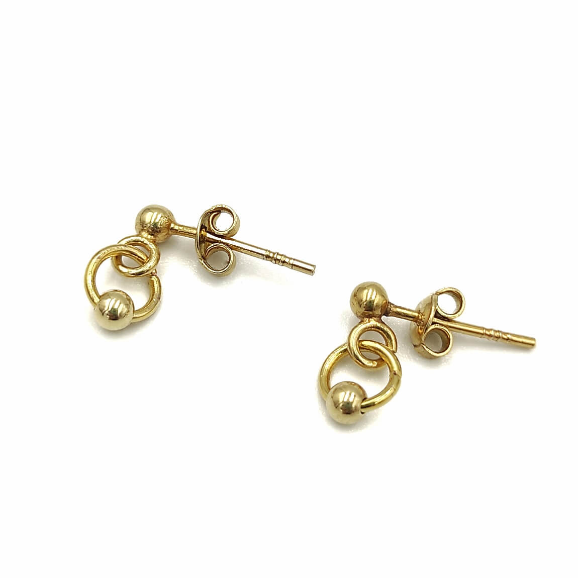 Kolczyki srebrne pozłacane z kuleczką zamieszczoną na kółeczku. Kolczyki zostały wykonane ze srebra pokrytego mikronami 24-karatowego złota, w kolorze żółtym.