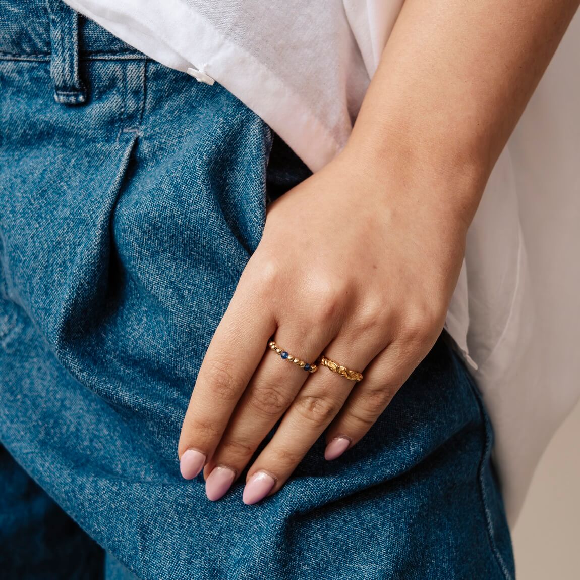 Pierścionek na gumce srebrny złocony z kamieniami sodalitu Lumi Cosi